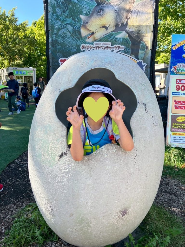 入口では可愛い恐竜の卵がお出迎え。中に入ってワクワクしながら顔を出す子どもたちの笑顔が弾けます。