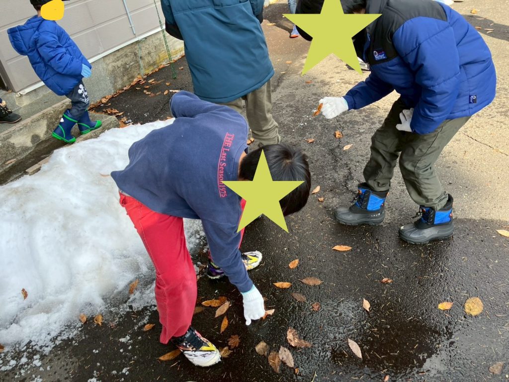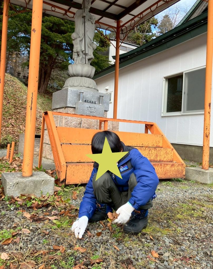 最後には、お寺を貸していただいてたお礼に、みんなで境内の掃除をしました。友達と協力して落ち葉を拾い集める中で、笑顔が見られることも!😄落ち葉拾いを通して、協調性やコミュニケーション能力を高める時間にもなりました。