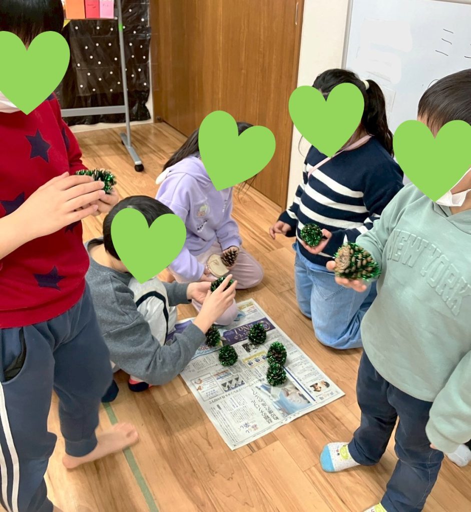 今回は、松ぼっくりを使ったミニツリー製作を行いました。自然素材に触れながら、世界に一つだけのオリジナルツリー作りに挑戦しました🎄