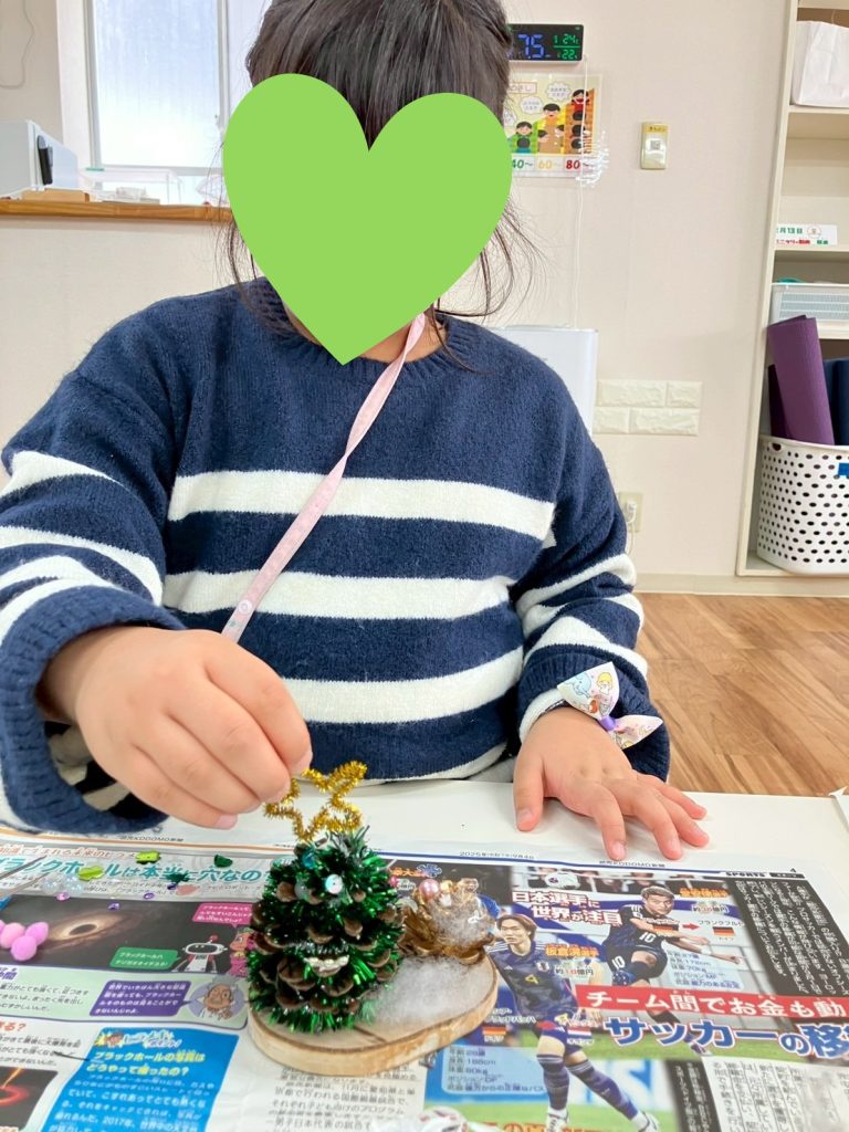 飾り付けでは、小さなビーズやパーツを指先でつまみ、配置を考えながら丁寧に取り組んでいました。「ここにつけたい」「次はこれにする」と考えを整理しながら進めることで、集中して取り組む時間が増えていきました!✨️