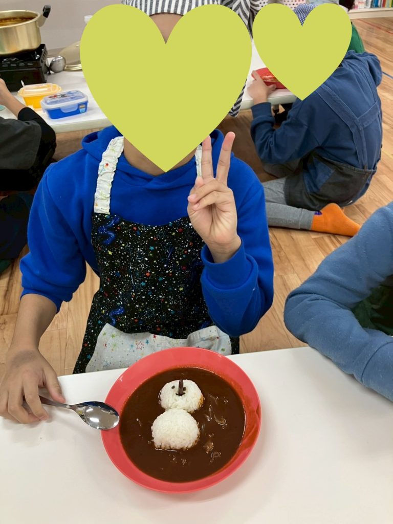 クッキング活動を通して、役割分担・順番を守ること・道具の安全な使い方だけでなく、友達と協力する力や達成感を感じる経験となりました。完成したハヤシライスを笑顔で食べる姿から、活動への満足感が伝わってきました✨️