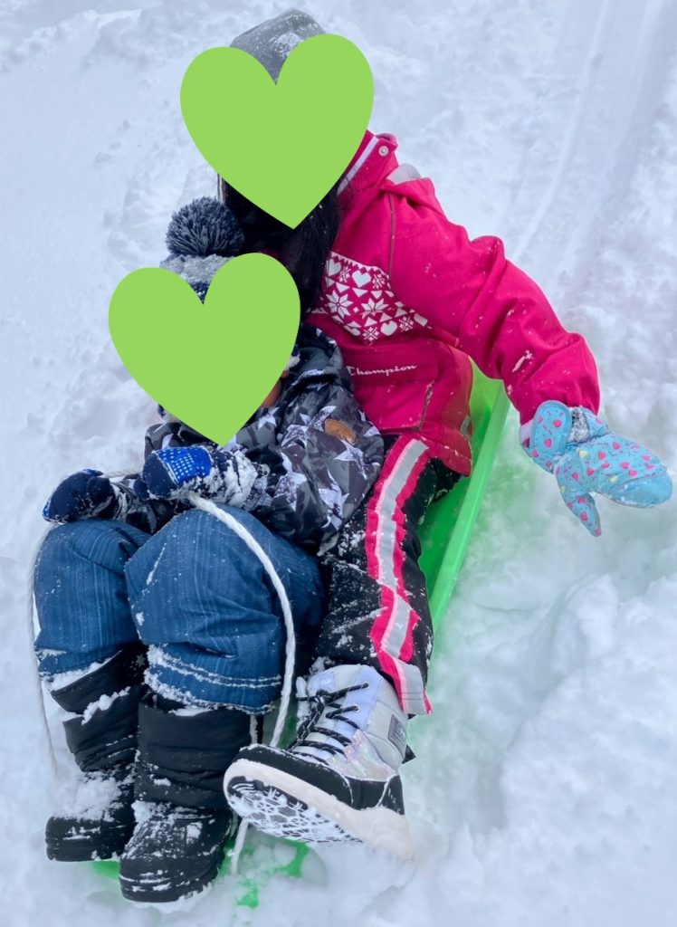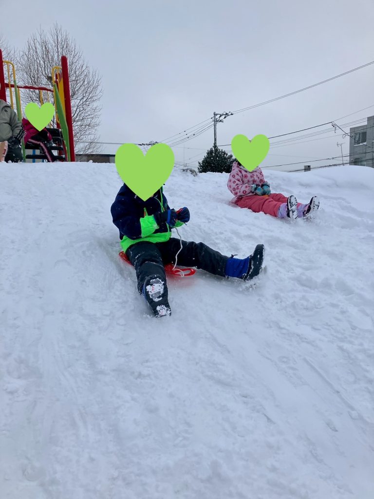 また、そり滑り等の雪遊びも行い、雪の感触やスピード感を楽しみながら、冬ならではの遊びも満喫しました。