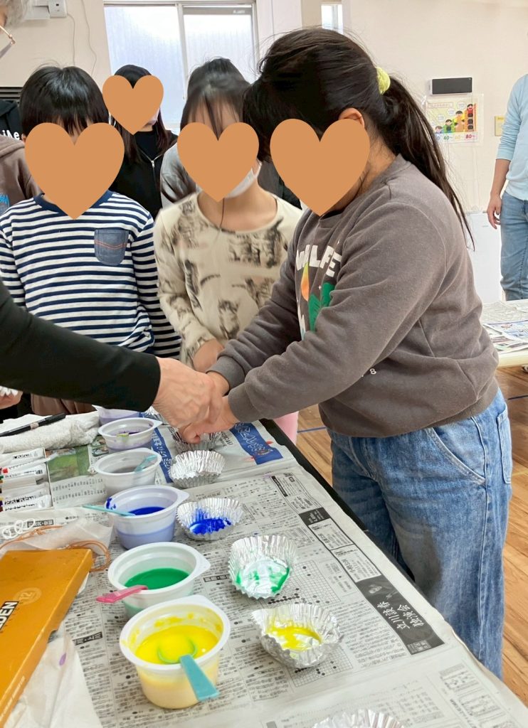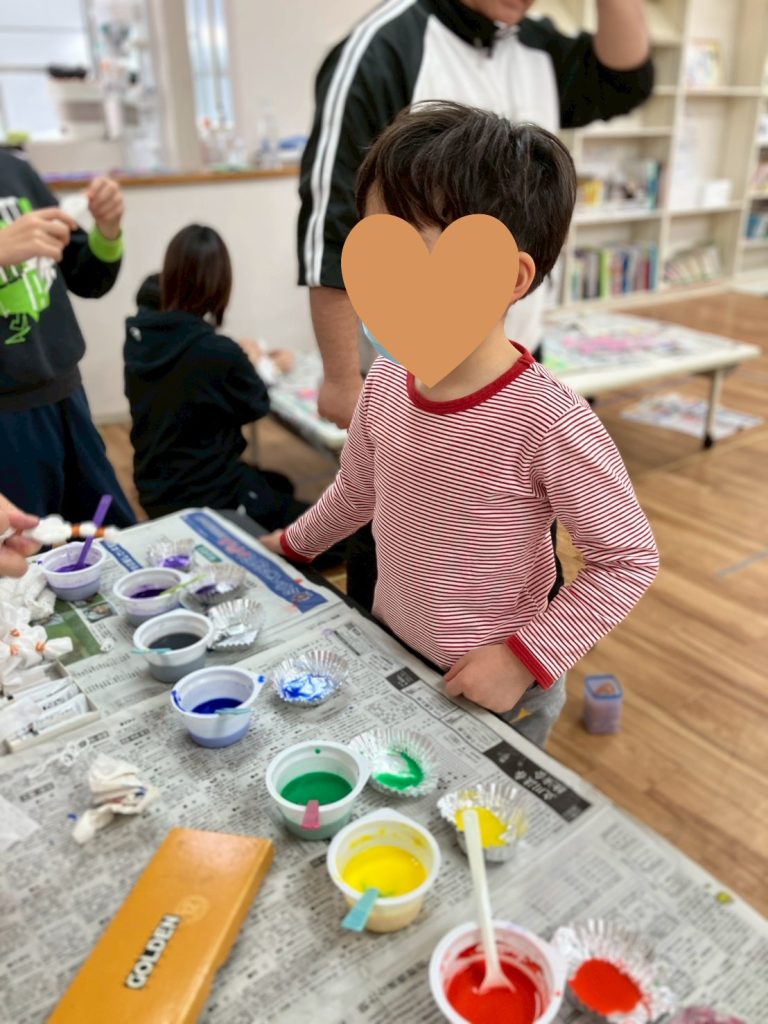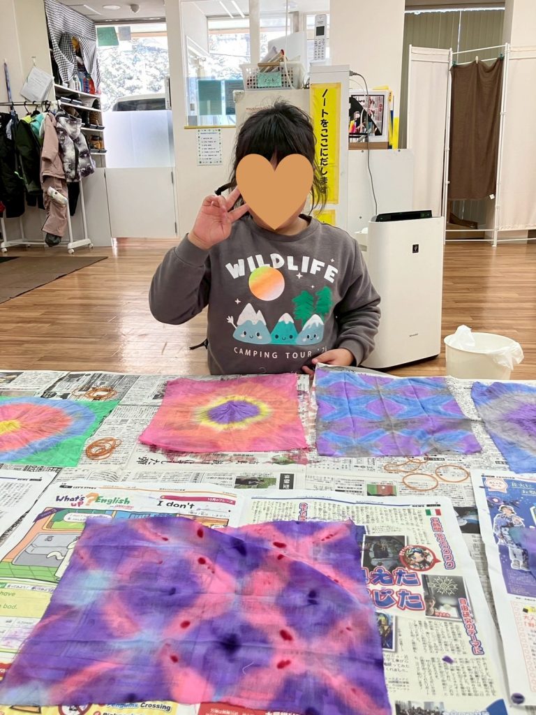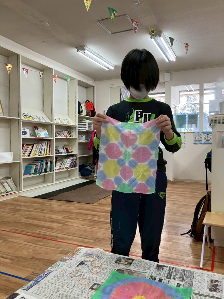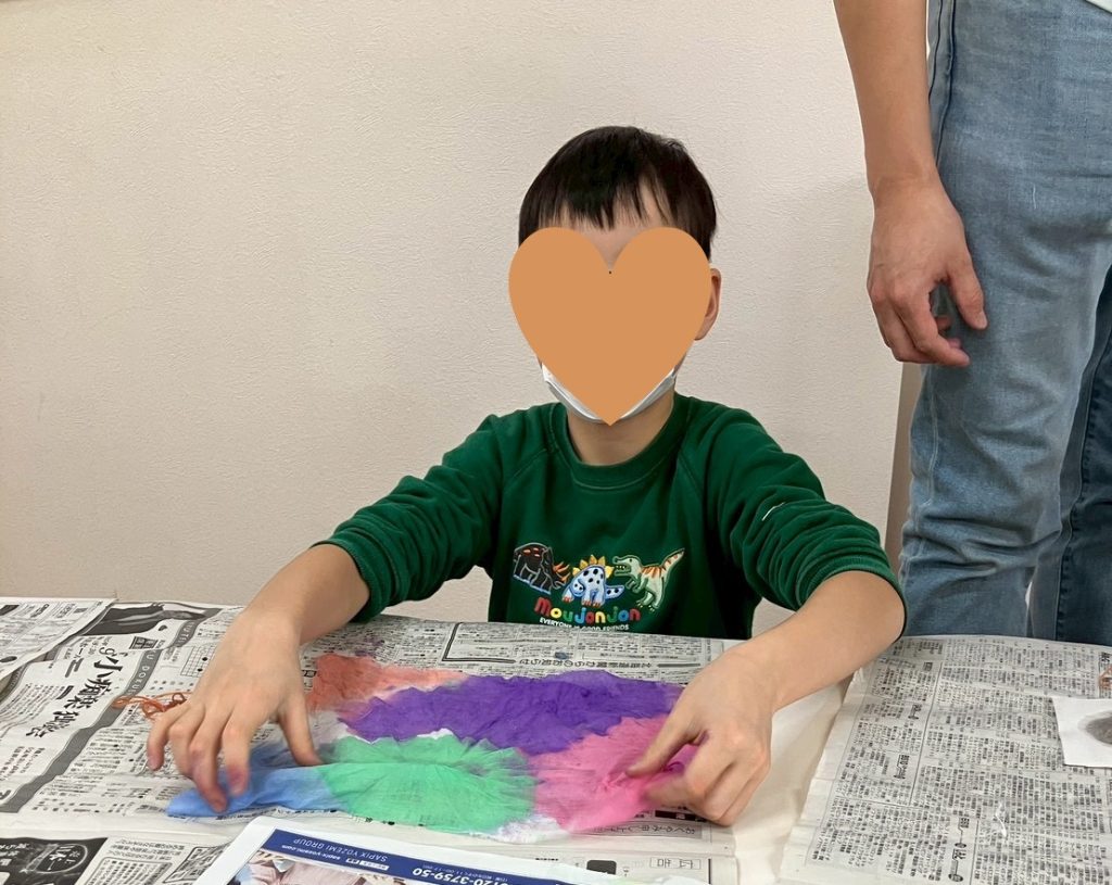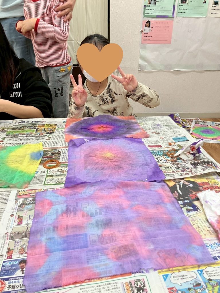 ガーゼの布をアクリル絵の具で染めて遊ぶ活動です。